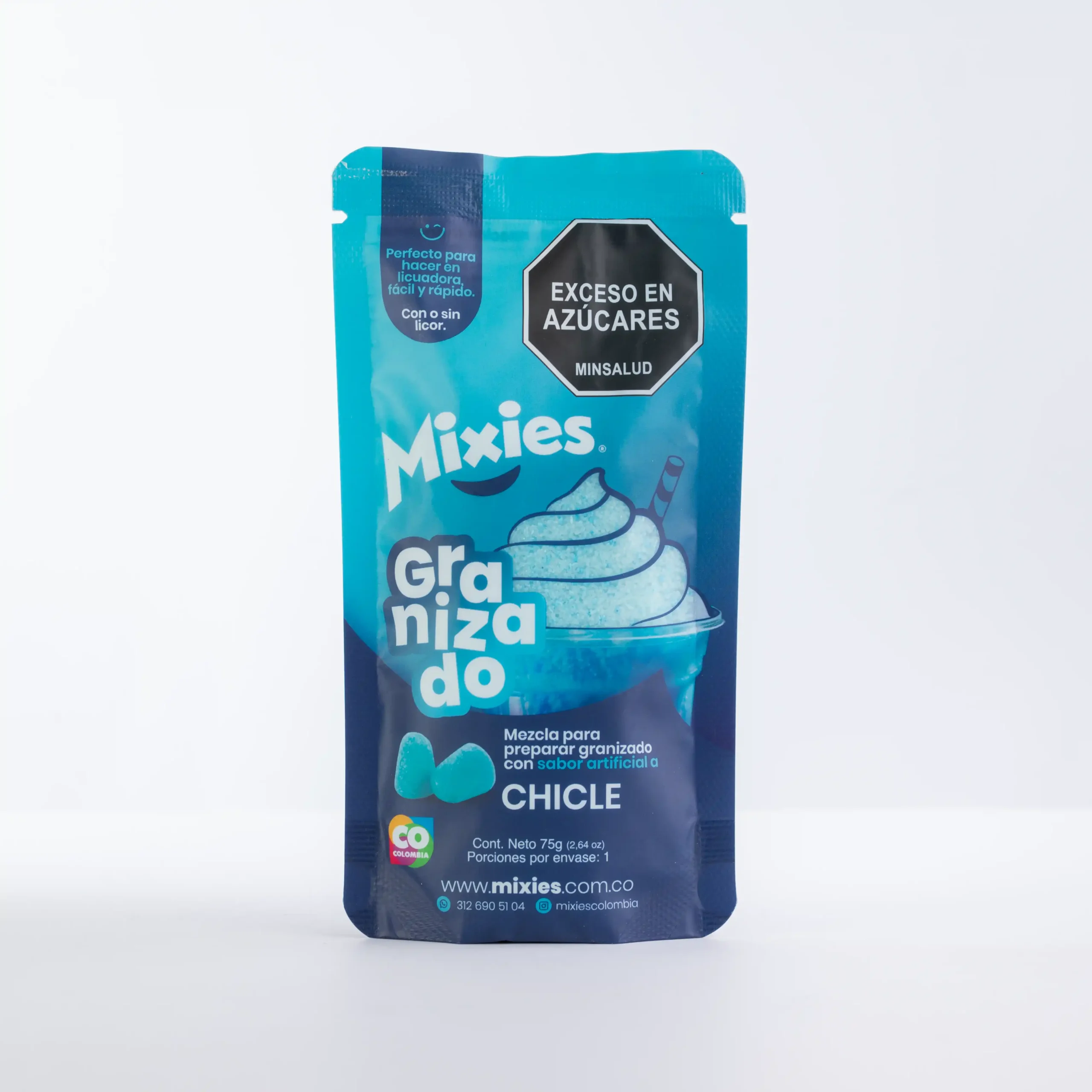 Los sachets de granizado Mixies son una mezcla en polvo para granizados en porción individual, ideal para quienes quieren hacer granizados en casa de forma fácil, rápida y con la medida exacta. Solo necesitas mezclar el contenido del sachet con agua y hielo, preparar tu granizado en licuadora para obtener una textura refrescante y un sabor consistente.